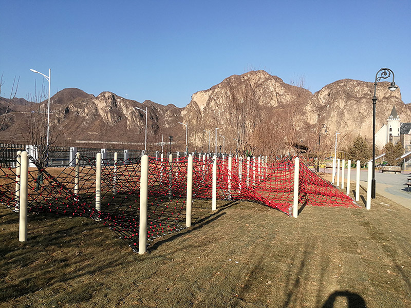 網(wǎng)繩區(qū):采用多組空中網(wǎng)繩橋相連接,架設(shè)成空中走廊,主要是鍛煉孩子們的攀爬能力和平衡力,高低不一,錯(cuò)落有致,讓孩子體驗(yàn)不同的網(wǎng)繩快樂。