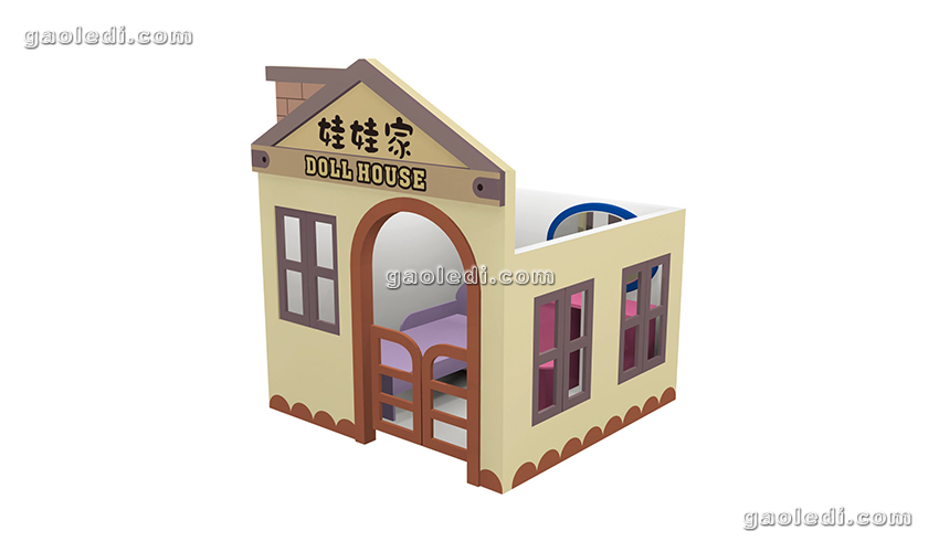 2、造型新穎 幼兒娃娃家以人的生活世界為設(shè)計原型,相當(dāng)于一個微縮的生活環(huán)境。在娃娃家中有廚房、客廳、臥室、郵局、醫(yī)院、美容院、銀行等等生活配套設(shè)施,這些都是兒童將來步入社會需要接觸到的東西。逼真形象的環(huán)境情景模擬讓兒童在角色扮演和玩樂中認(rèn)識生活,了解社會。