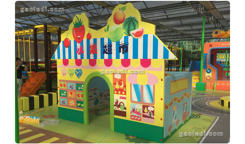 2、造型新穎 幼兒娃娃家以人的生活世界為設(shè)計原型,相當(dāng)于一個微縮的生活環(huán)境。在娃娃家中有廚房、客廳、臥室、郵局、醫(yī)院、美容院、銀行等等生活配套設(shè)施,這些都是兒童將來步入社會需要接觸到的東西。逼真形象的環(huán)境情景模擬讓兒童在角色扮演和玩樂中認(rèn)識生活,了解社會。