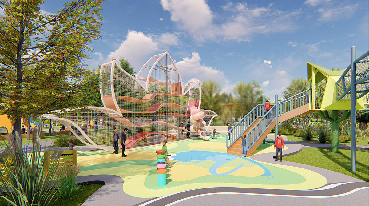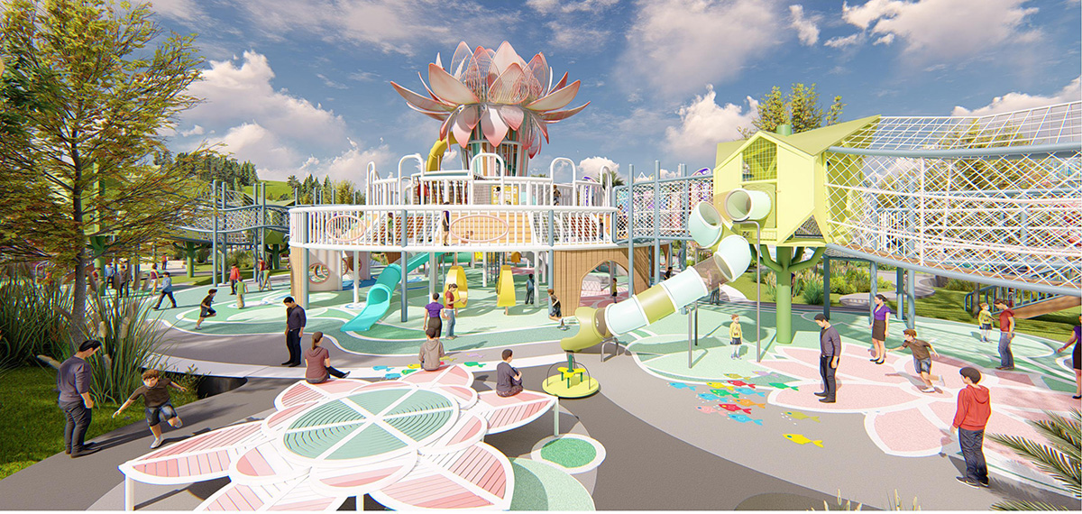 景觀規(guī)劃:景觀手法規(guī)劃場地,形成交互,增強體驗。 流線空間:提取歷史文化,植入到空間,形成空間變化。 設(shè)備植入:獨特的造型、肌理、色彩等融入到場景當(dāng)中。 場景表達:空間串聯(lián),打破常規(guī),塑造特色的主題樂園。 故事串聯(lián):利用故事吸引流量,給運營打造良好的基礎(chǔ)。 產(chǎn)品運營:文化結(jié)合設(shè)計,讓兒童在游玩的同時了解當(dāng)?shù)匚幕?
