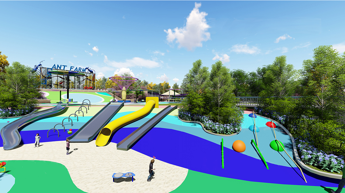景觀規(guī)劃:景觀手法規(guī)劃場(chǎng)地,形成交互,增強(qiáng)體驗(yàn)。 流線空間:提取歷史文化,植入到空間,形成空間變化。 設(shè)備植入:獨(dú)特的造型、肌理、色彩等融入到場(chǎng)景當(dāng)中。 場(chǎng)景表達(dá):空間串聯(lián),打破常規(guī),塑造特色的主題樂(lè)園。 故事串聯(lián):利用故事吸引流量,給運(yùn)營(yíng)打造良好的基礎(chǔ)。 產(chǎn)品運(yùn)營(yíng):文化結(jié)合設(shè)計(jì),讓兒童在游玩的同時(shí)了解當(dāng)?shù)匚幕?