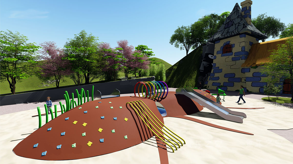 景觀規(guī)劃:景觀手法規(guī)劃場地,形成交互,增強體驗。 流線空間:提取歷史文化,植入到空間,形成空間變化。 設備植入:獨特的造型、肌理、色彩等融入到場景當中。 場景表達:空間串聯(lián),打破常規(guī),塑造特色的主題樂園。 故事串聯(lián):利用故事吸引流量,給運營打造良好的基礎(chǔ)。 產(chǎn)品運營:文化結(jié)合設計,讓兒童在游玩的同時了解當?shù)匚幕?