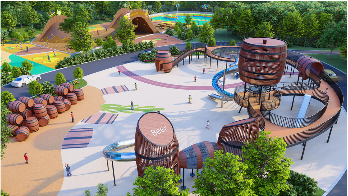 景觀規(guī)劃:景觀手法規(guī)劃場(chǎng)地,形成交互,增強(qiáng)體驗(yàn)。 流線空間:提取歷史文化,植入到空間,形成空間變化。 設(shè)備植入:獨(dú)特的造型、肌理、色彩等融入到場(chǎng)景當(dāng)中。 場(chǎng)景表達(dá):空間串聯(lián),打破常規(guī),塑造特色的主題樂(lè)園。 故事串聯(lián):利用故事吸引流量,給運(yùn)營(yíng)打造良好的基礎(chǔ)。 產(chǎn)品運(yùn)營(yíng):文化結(jié)合設(shè)計(jì),讓兒童在游玩的同時(shí)了解當(dāng)?shù)匚幕?