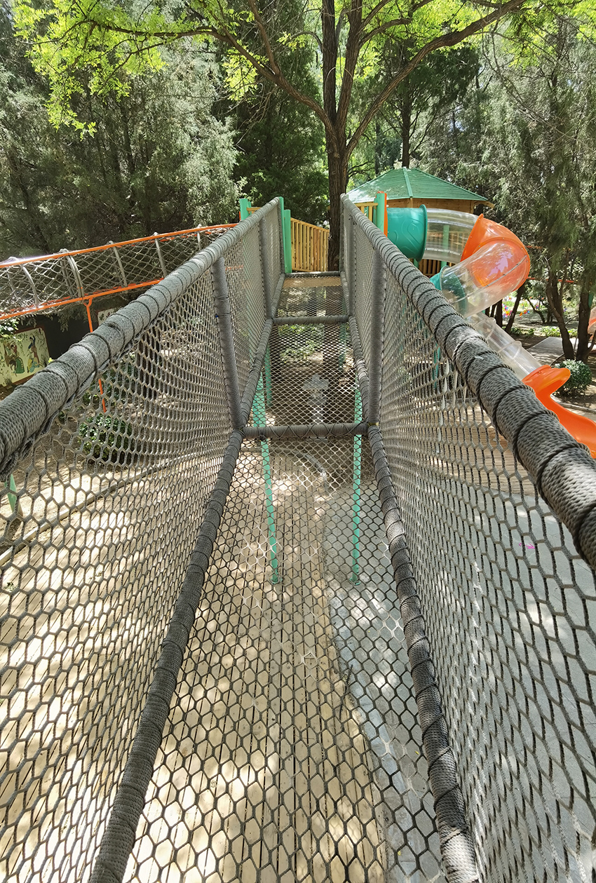 繩網(wǎng)橋,走在上面是不是 有空中行走的感覺,相當鍛煉孩子們的膽量了。