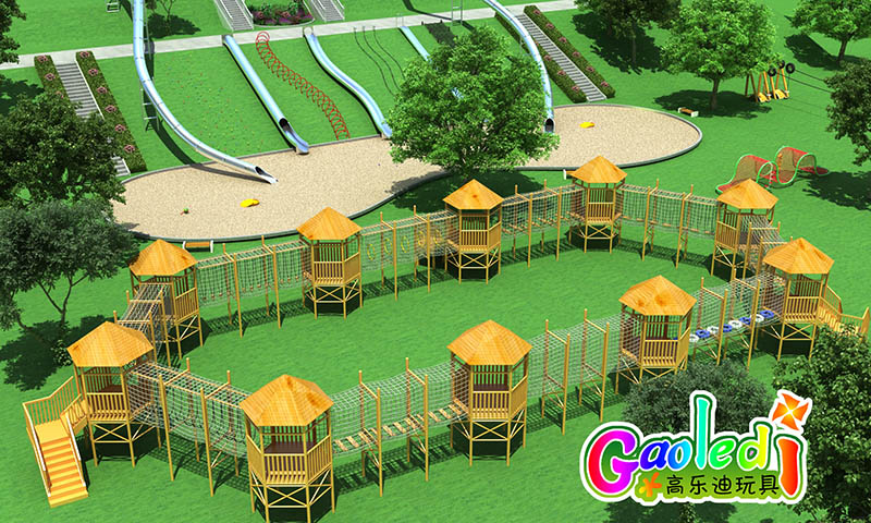 湖北恩施度假村兒童樂(lè)園總占地面積2000平米,此次高樂(lè)迪為度假村量身定制了超刺激的不銹鋼滑梯及兒童拓展。